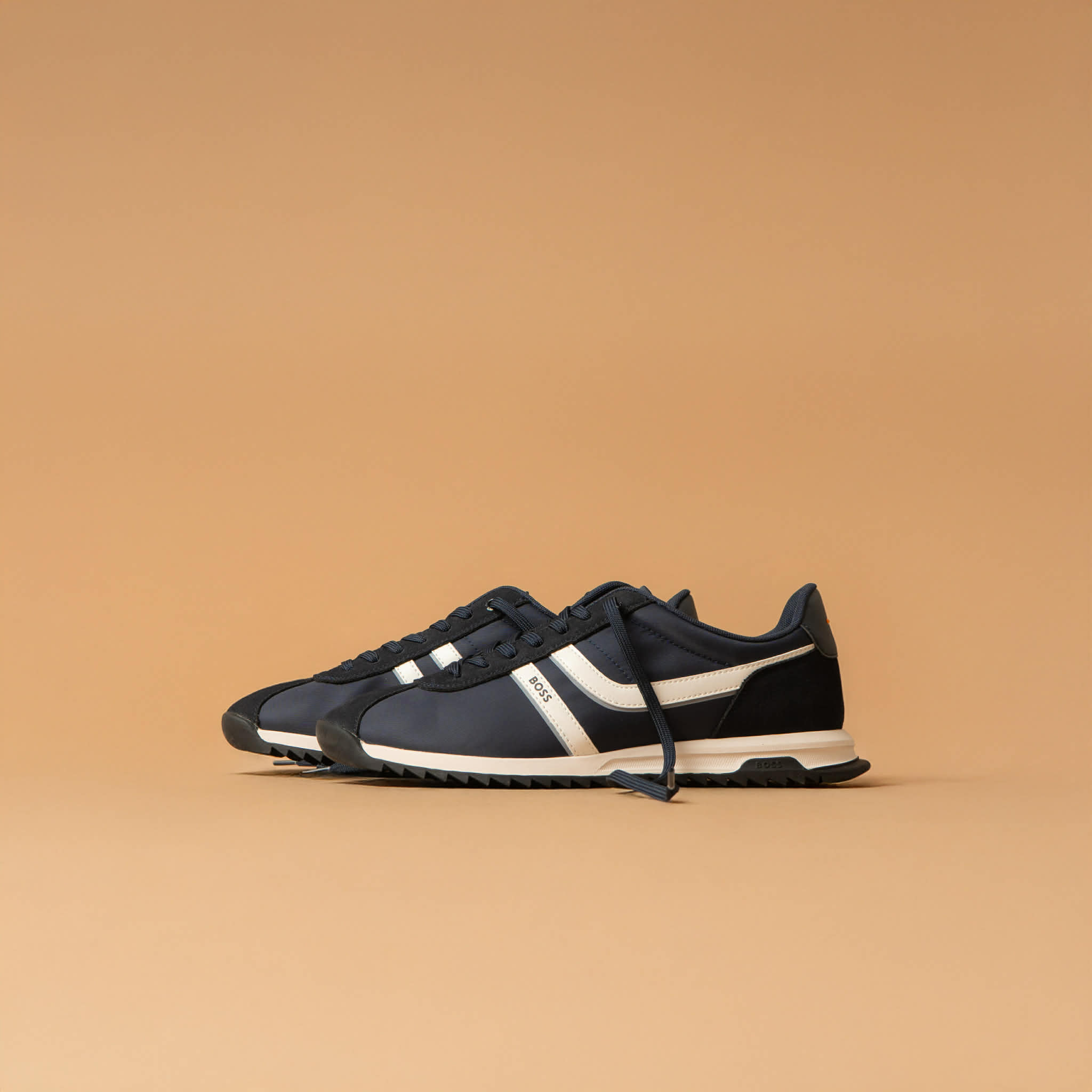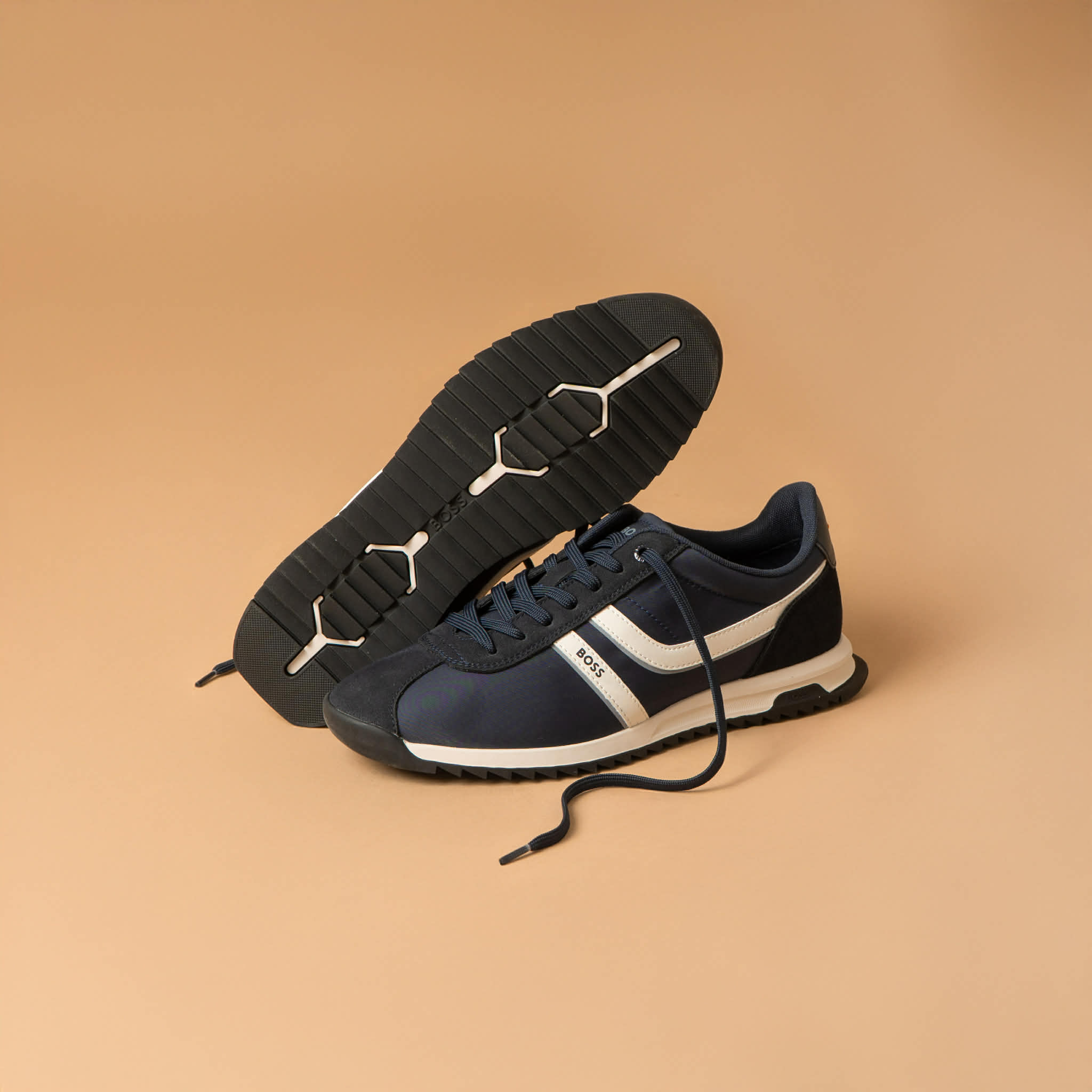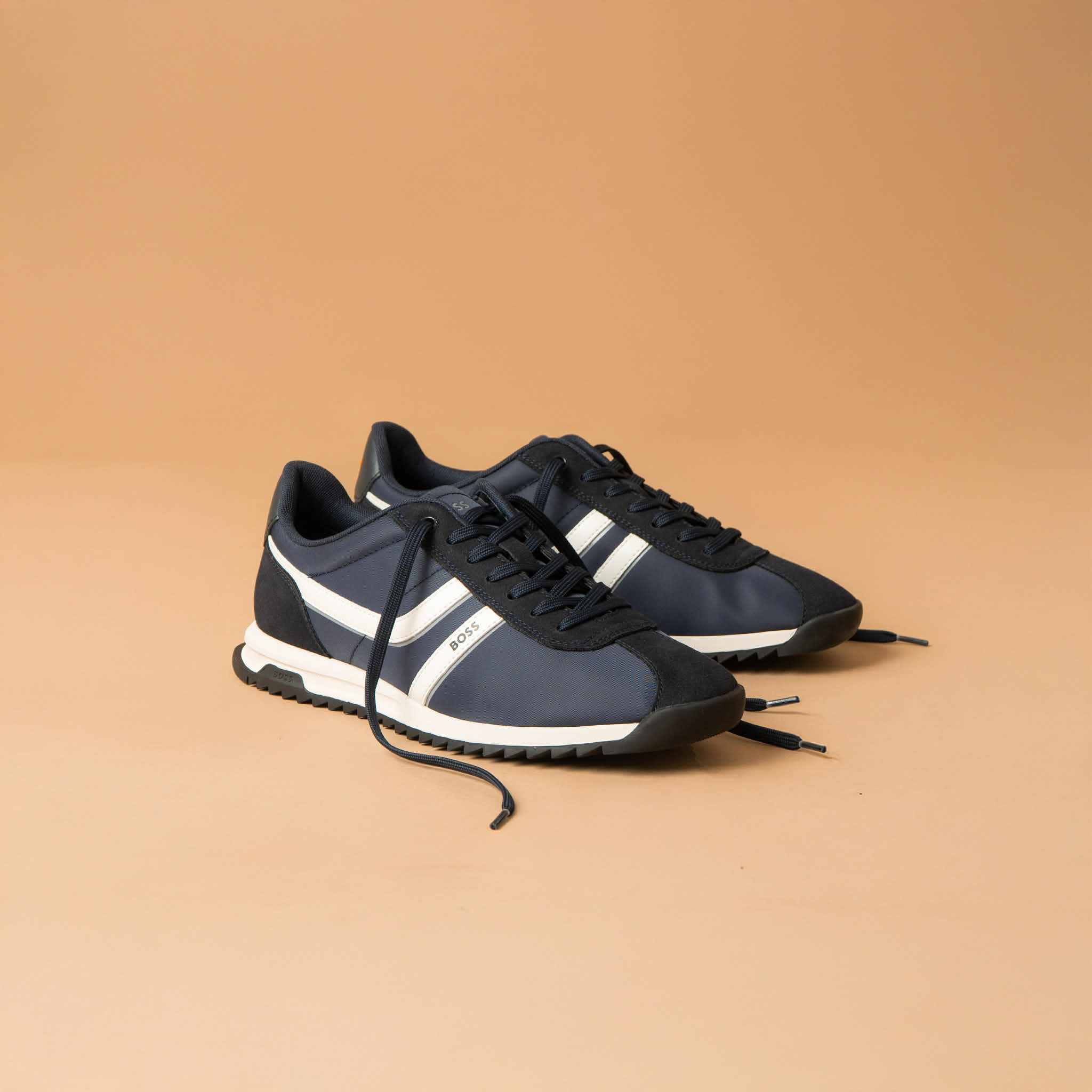 BOSS MEN ORANGE ZAYN LOWP NYMI LACE-UP TRAINERS DARK BLUE